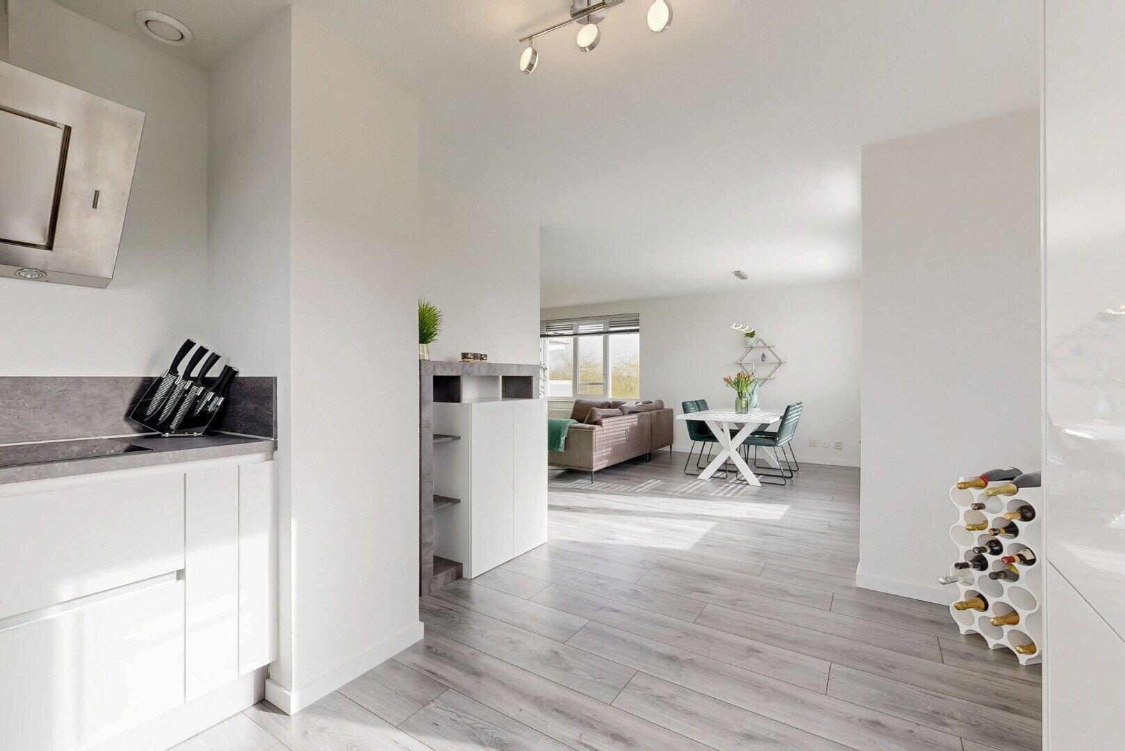 Het gehele appartement is in 2021 professioneel geschilderd. De wanden zijn strak afgewerkt en de vloer is voorzien van een moderne laminaatvloer.